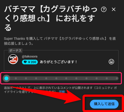 もしも「今回の動画良かったなぁー」とか「バチママがんばれー」って思っていただけたら。